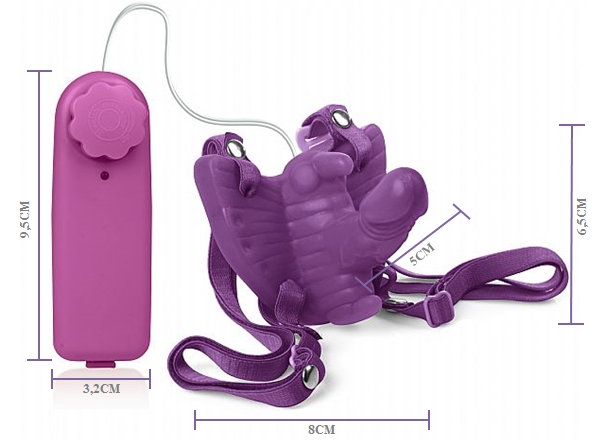 Material: Borboleta em Polivinil Atóxico. Vibrador em ABS atóxico. Tiras em elastano.