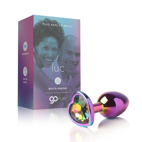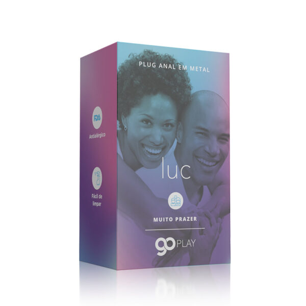 Embalagem: Caixa de papel contendo 01 Plug anal metal Go Play Gil acondicionado em saquinho com cadarço.