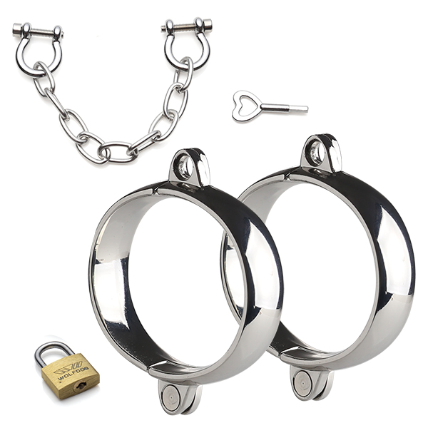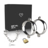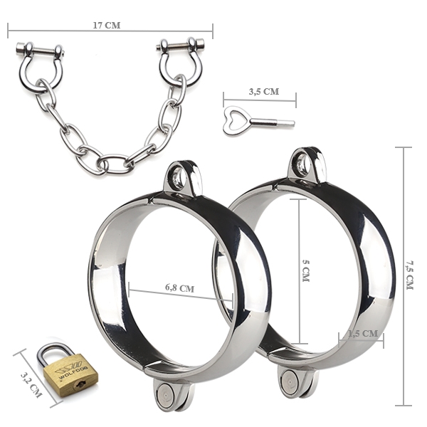 Embalagem: Caixa de papel contendo 01 unidade da algema de pulso ou tornozeleira em aço HandLuxuryTwo acondicionada em saquinho com cadarço. Acompanha manual ilustrado da linha Metal Sex.