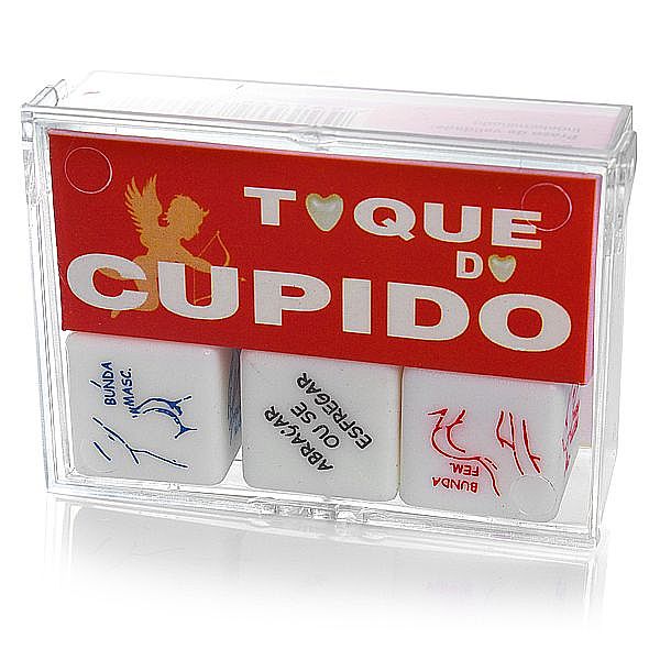 Embalagem: Caixa acrílica contendo 03 dados Toque do Cupido.