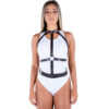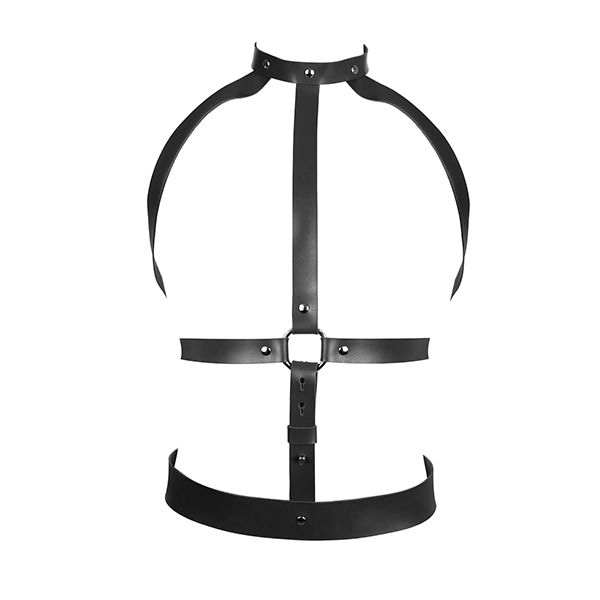 - Body sensual Urban Sex é confeccionado em tiras de couro ecológico com ilhós na cor prata.