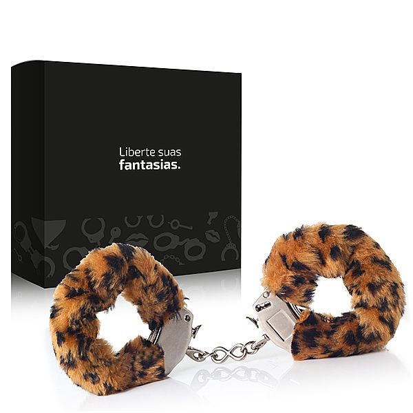 Cor: Algema em metal cromado revestida em pelúcia oncinha.