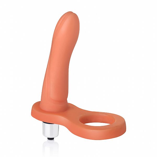 - Com o anel voltado para seu corpo vista o pênis até a base de forma que o mini pênis fique abaixo de seu pênis e na mesma direção.