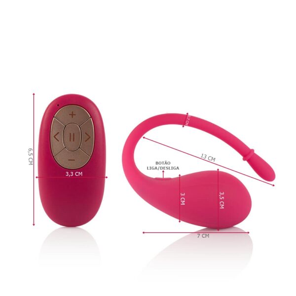 Composição: Vibrador em silicone de grau médico 100% atóxico. Controle em ABS rígido atóxico.