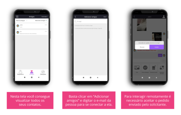 • Com o aplicativo Eva-connect, existem várias maneiras de excitar sua parceria estando ou não próximo de você.