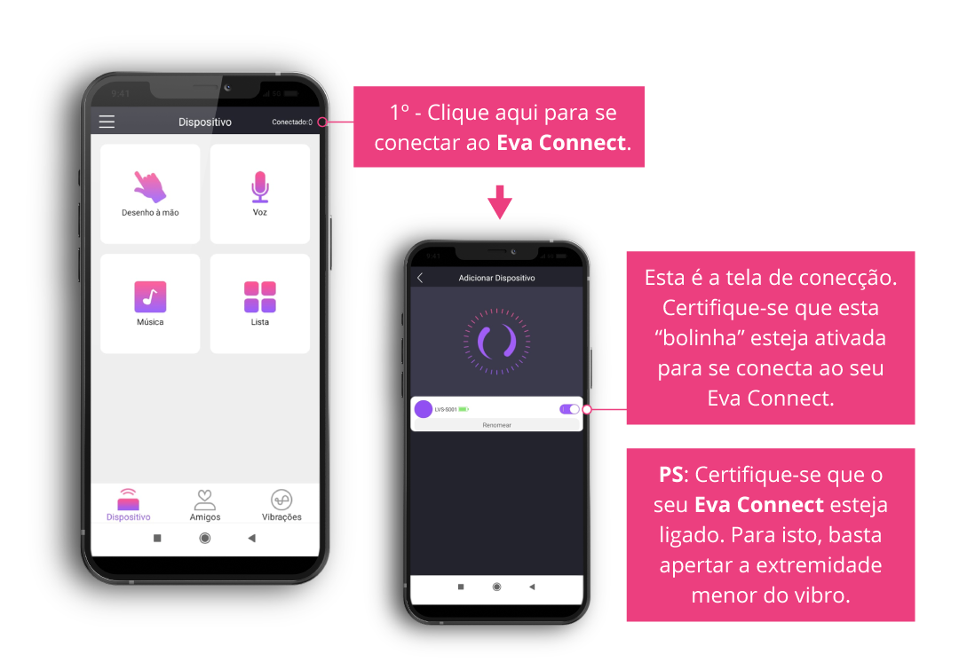 • Com o aplicativo Eva-connect, existem várias maneiras de excitar sua parceria estando ou não próximo de você.