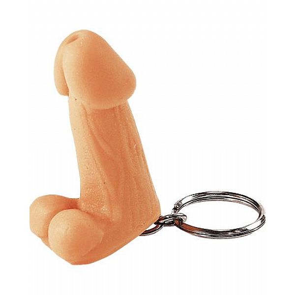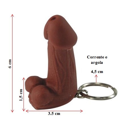 - Mini chaveiro em formato de pênis com escroto corrente e argola