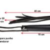 - Cabo de madeira com revestimento em couro permitindo uma pegada confortável com chicotadas perfeitas e certeiras.