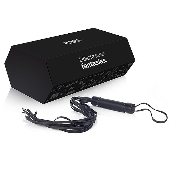Embalagem: Caixa de papel contendo 01 chicote em couro com 09 tiras.