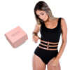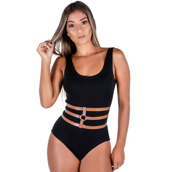 - Os ajustes da cintura e costas é feito meio de tiras de elastano com colchete.