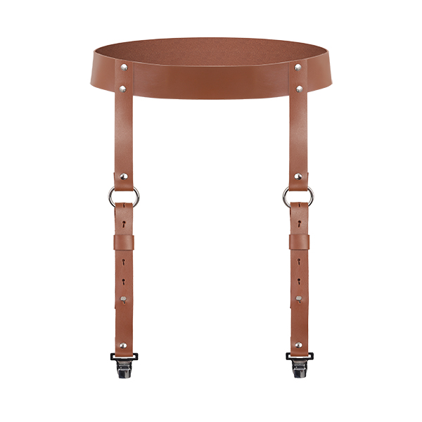 - Cinto Suspensório Sex Camelo é confeccionado em tiras de couro ecológico com ilhós na cor prata.
