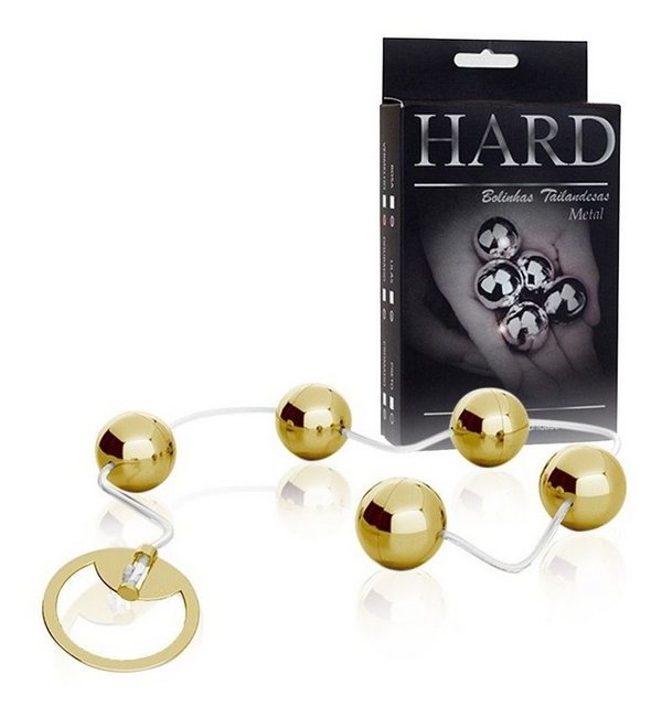 Embalagem: Caixa de papel contendo 01 Conjunto Bolinha Tailandesa Metálica – Dourada – Hard