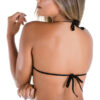 • Soutien com bojo acolchoado com acabamento franzido em vinil e tiras de amarrar em elastano.