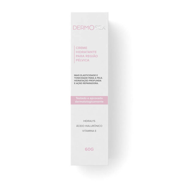 Embalagem: Caixa de papel contendo uma bisnaga de Creme Hidratante Para Região Pélvica Dermosex – 60 g.