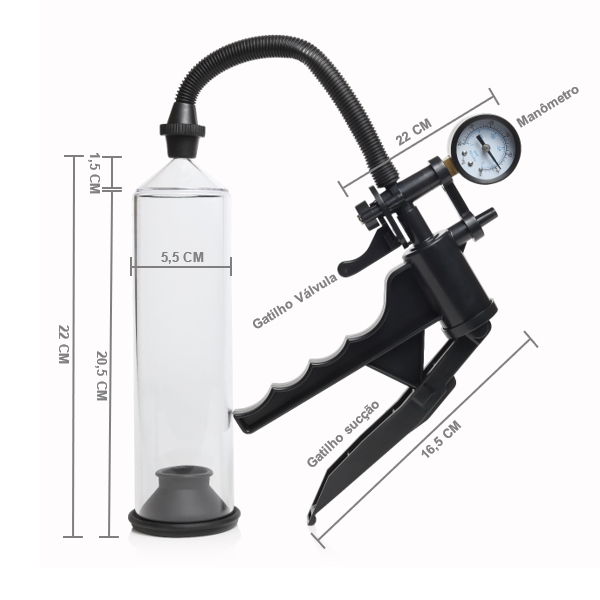 • Com a ausência de ar dentro do tubo ao iniciar o bombeamento seu pênis será sugado e crescerá dentro da câmera de vácuo chegando a ficar totalmente rígido.