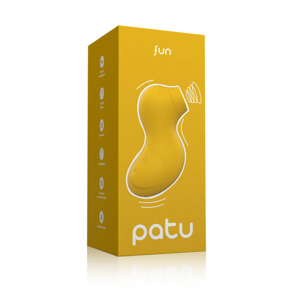 Embalagem:  Caixa de papel contendo 01 estimulador de clitóris recarregável Fun Patu , 01 cabo de carregamento USB e 01 manual de utilização.