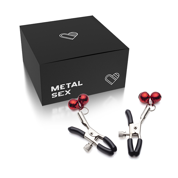 Embalagem: Caixa de papel contendo 01 par de grampos para Mamilo Nips Metal acondicionado em saquinho com cadarço. Acompanha manual ilustrado da linha Metal Sex.