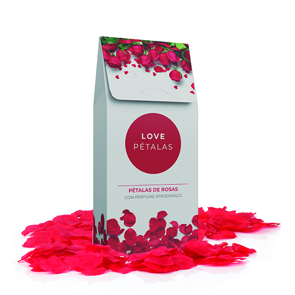 Embalagem: Caixa de papel totalmente estilizada contendo 100 pétalas perfumadas na cor vermelha.