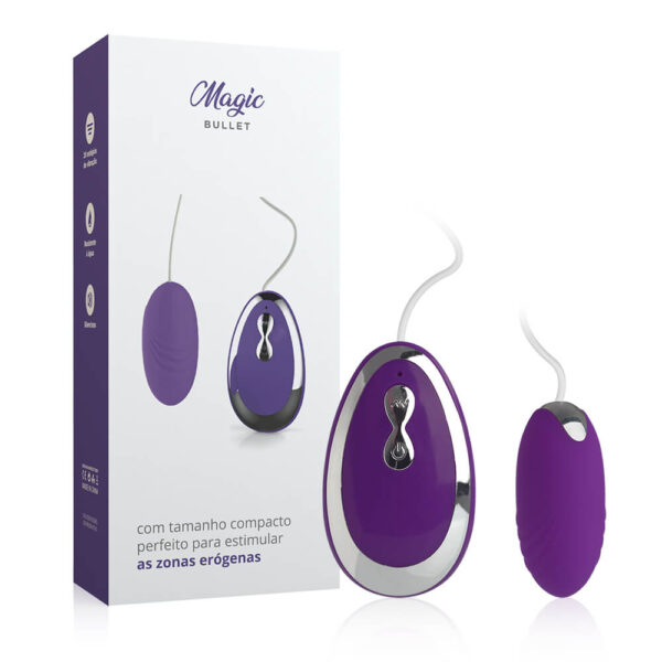 Embalagem: Caixa de papel contendo 01 unidade do Ovo Vibratório Multivelocidade Magic Bullet – Lilás.