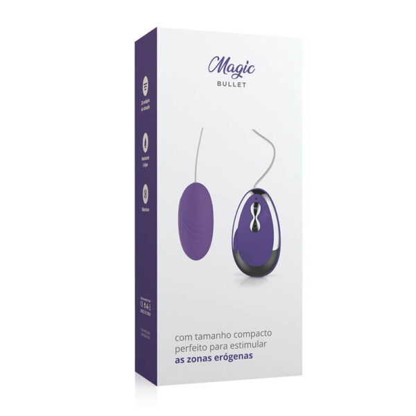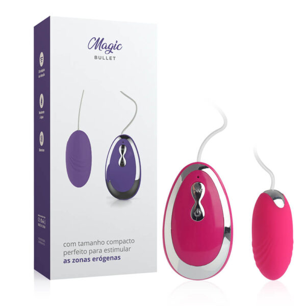 Embalagem: Caixa de papel contendo 01 unidade do Ovo Vibratório Multivelocidade Magic Bullet – Rosa.
