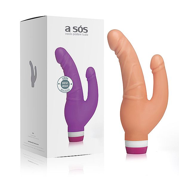 Embalagem: Caixa de papel contendo informações de uso do produto. Contém 01 unidade do Pênis Morfeu Duplo com Vibro na cor bege.