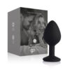 Embalagem: Caixa de papel contendo 01 plug anal em silicone Go Play Leo médio – Preto