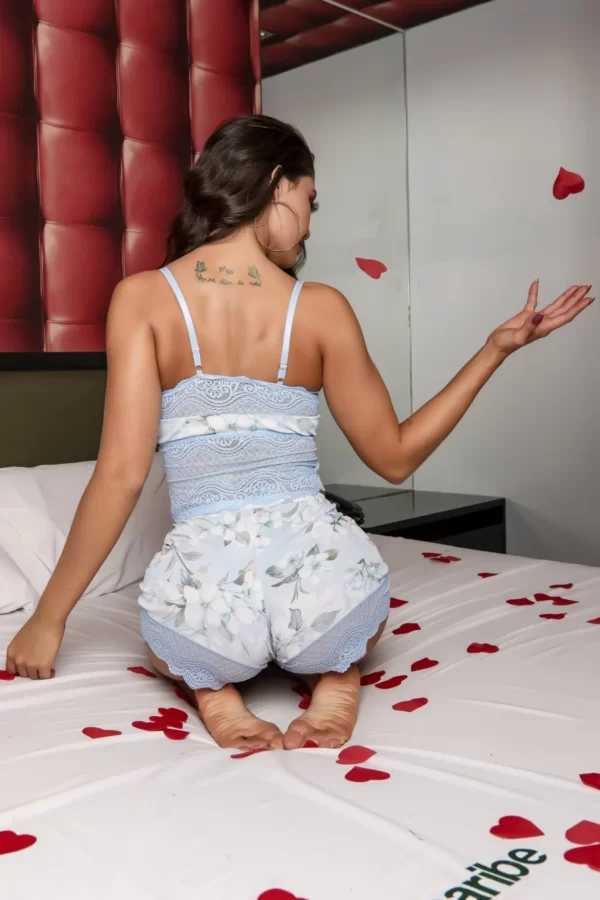 Short Doll com Bojo Removível em Liganete de Poliamida e Renda