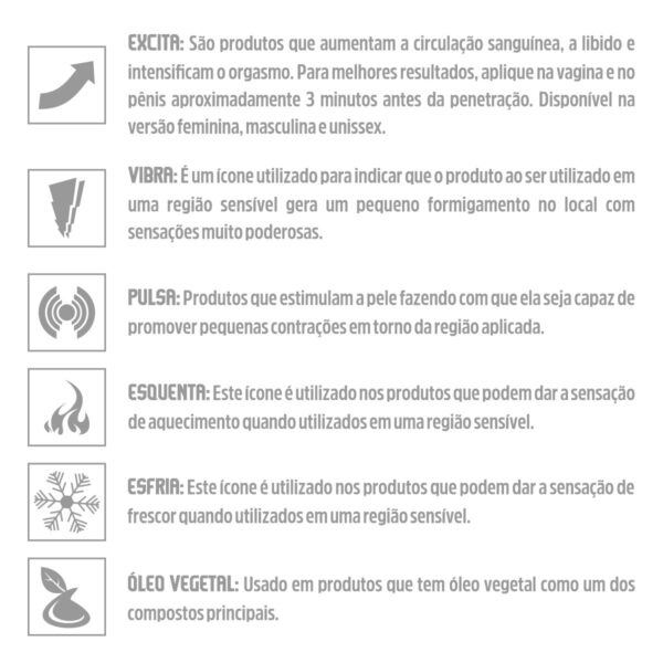 - Após serem introduzidas elas derretem ou explodem num tempo aproximado de 03 a 04 minutos, provocando sensações prazerosas e instigantes.
