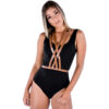 - Na cintura e costas possui ajuste por meio de tiras de elastano com colchete permitindo uma vestimenta prática, usual e perfeita adequação ao corpo.