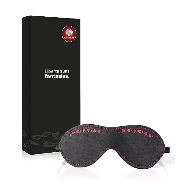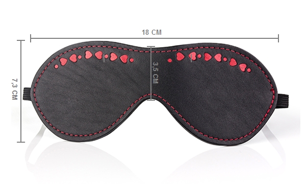 - Tapa olho em couro sintético com acabamento em formato de coração.