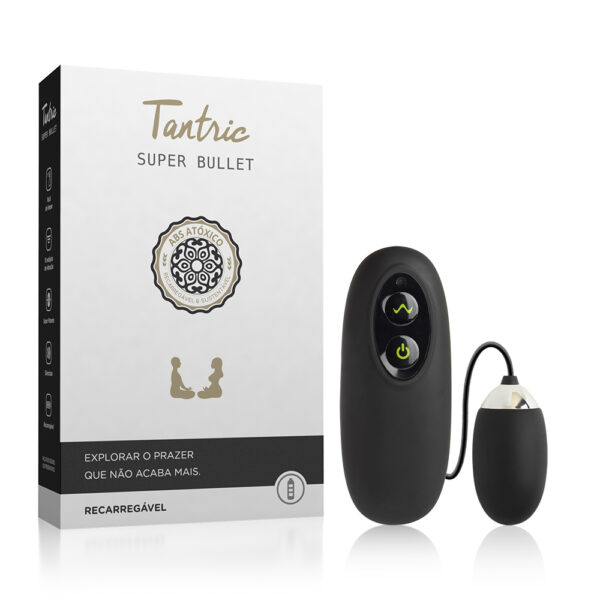 Embalagem: Caixa de papel contendo 01 unidade do Vibrador e Estimulador Multivelocidade Recarregável Tantric Super Bullet. Acompanha 01 Guia para Iniciantes de Massagem Tântrica.