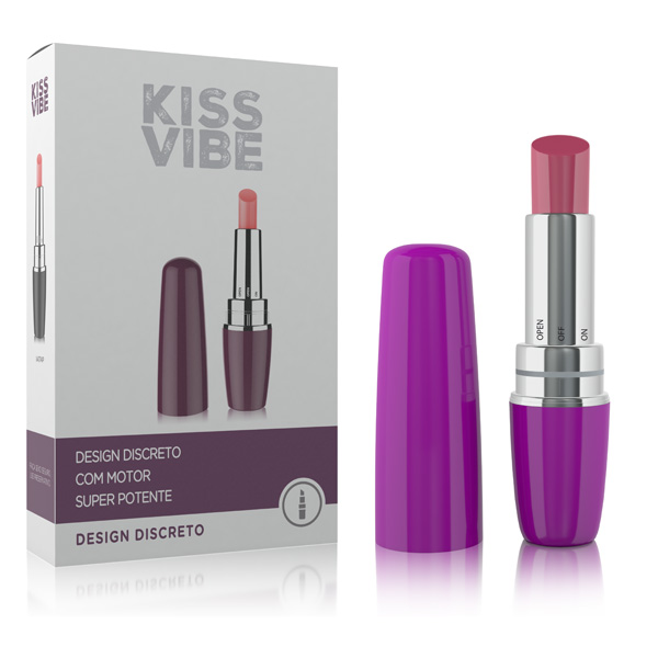 Embalagem: Caixa presenteável contendo 01 unidade do vibrador Lipstick Kiss Vibe Lilás em formato de batom.
