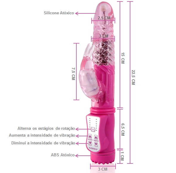 - Super Rabbit possui 08 estágios de rotação do eixo principal e 08 estágios diferentes de vibração do plug.